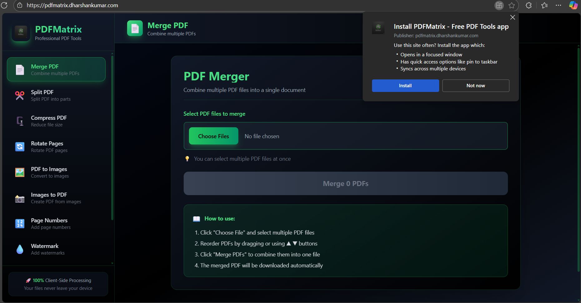 A privacy-first, client-side PDF editor that runs entirely in your browser without server uploads.